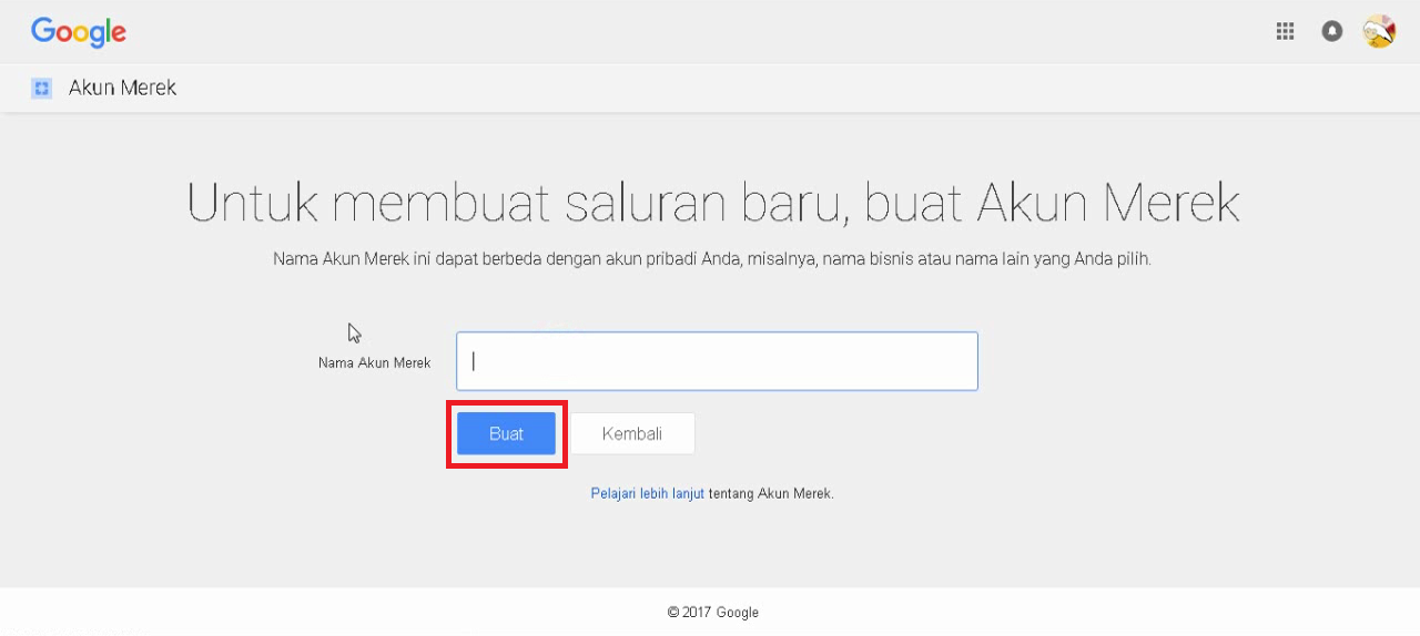 4. Maka kamu akan dialihkan ke halaman lain, lalu masukan nama channel kamu dan klik tombol “Buat“.