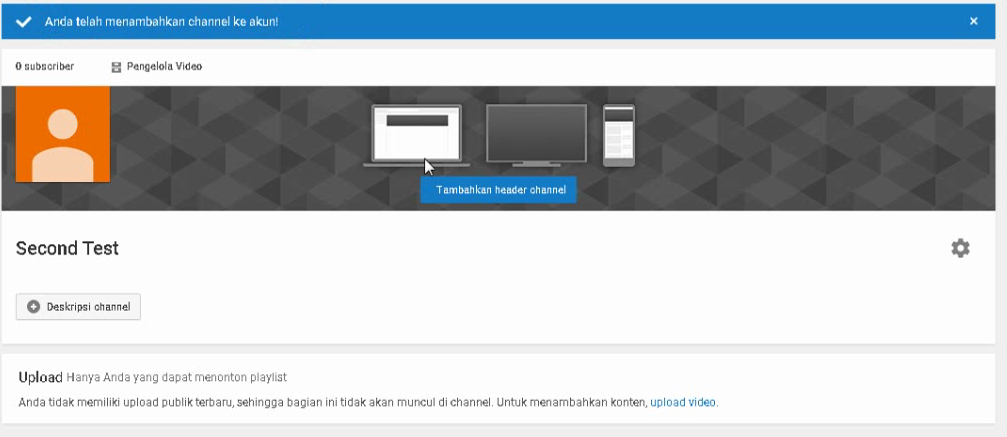 5. Setelah channel Sudah Jadi, isikan deskripsi, foto channel, gambar banner channel.