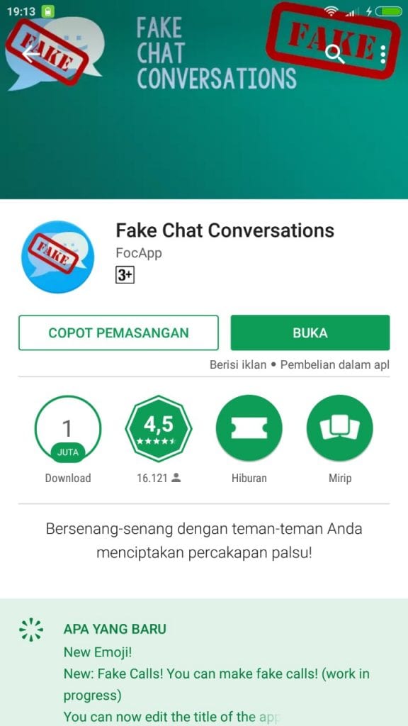 Sebelumnya penulis tegaskan, aplikasi ini hanya untuk hiburan dan bukan untuk menipu! Semisalnya ingin memperlihatkan kepada teman-temanmu jika kamu sedang atau pernah chat dengan seorang penyanyi terkenal mungkin Raisa atau bahkan Bruno Mars yang isinya sedang membicarakan hal lucu saat kamu bertemu dengan mereka. Aplikasi ini untuk Android dan tidak memerlukan koneksi internet atau juga akses root. Penulis akan mencontohkannya dan ayo kamu ikuti!