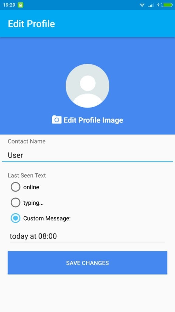 3. Pilih icon (+) lalu terlihat pilihan Fake Chat atau Group, disini penulis memilih Fake Chat. Lalu terlihat profile image, contact name dan last screen text yang dapat kamu isi sesuai orang yang kamu pilih untuk chat dengan kamu.