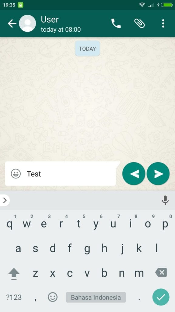 4. Jika semua sudah diatur lalu save changes. Ketik apa yang kamu mau bicarakan di chat dan tombol pilihan kirim akan ada dua. Pilih panah kanan untuk kamu yang ingin sebagai pengirim chat pertama kali atau panah kiri untuk kamu yang ingin di chat duluan oleh orang yang kamu sudah atur sebelumnya. Intinya panah kanan adalah kamu dan kiri adalah orang yang kamu sudah atur untuk chatting dengan kamu.