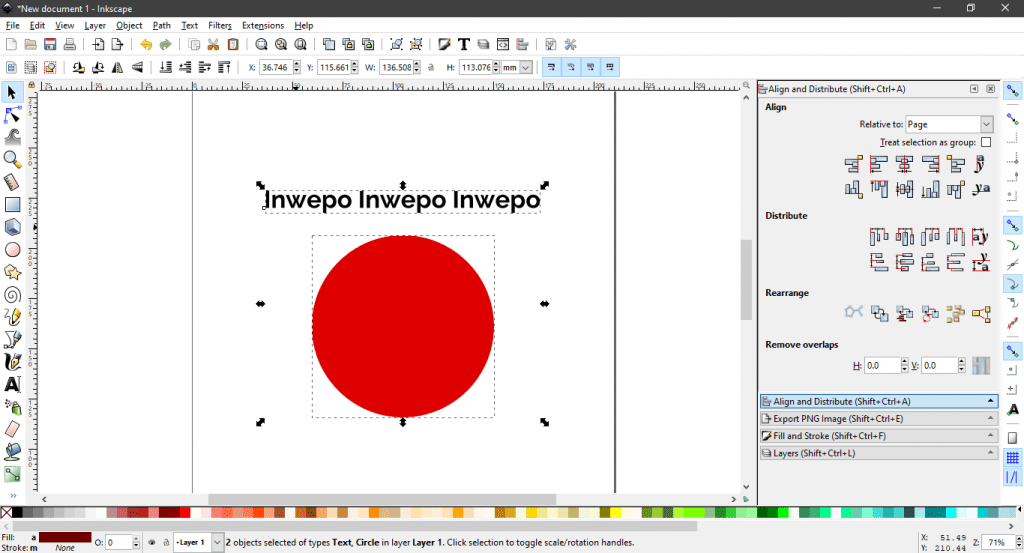 1. Buatlah dua obyek (lingkaran dan teks) pada canvas. Sesuaikan font teks yang ingin kamu gunakan, dimana nantinya akan kita transformasi ke dalam bentuk lingkaran.