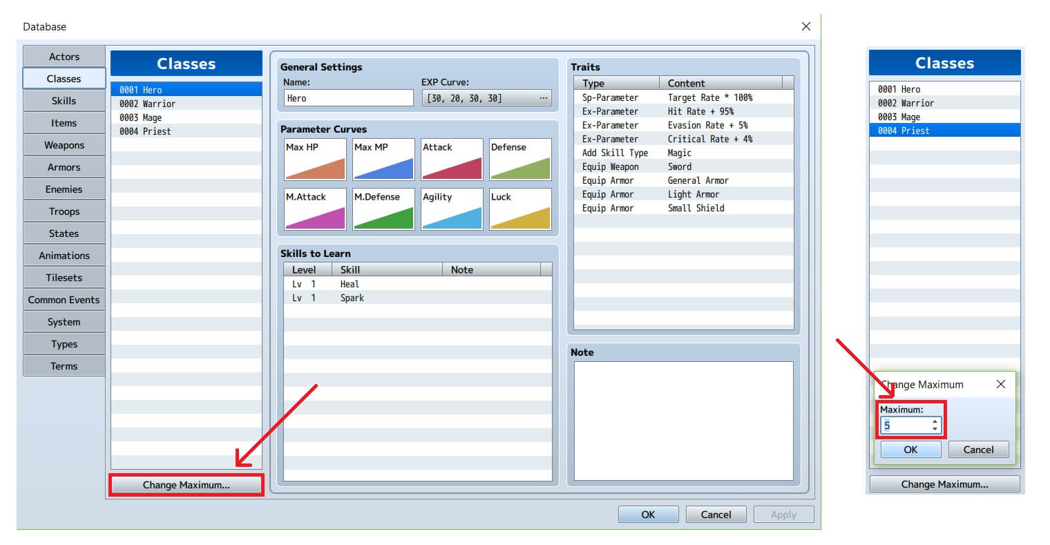 5. Pada menu tersebut kita klik pada bagian “Change Maximum” agar dapat mengganti banyaknya class yang ada pada game kita. Pada tutorial kali ini, kita cukup tambahkan satu agar maksimum classnya menjadi 5. Jika sudah, kita klik OK.