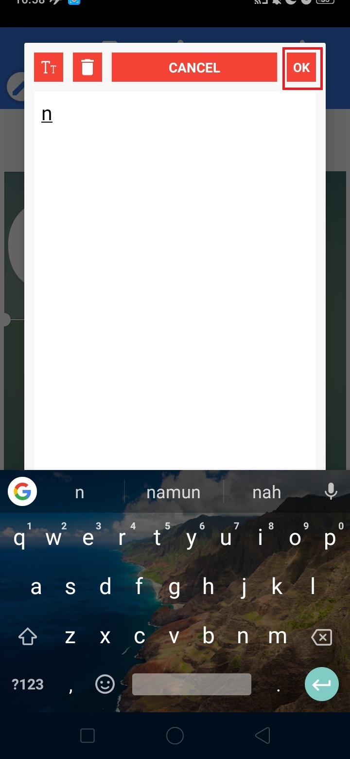 Tulis teks, disini saya akan menulis O.