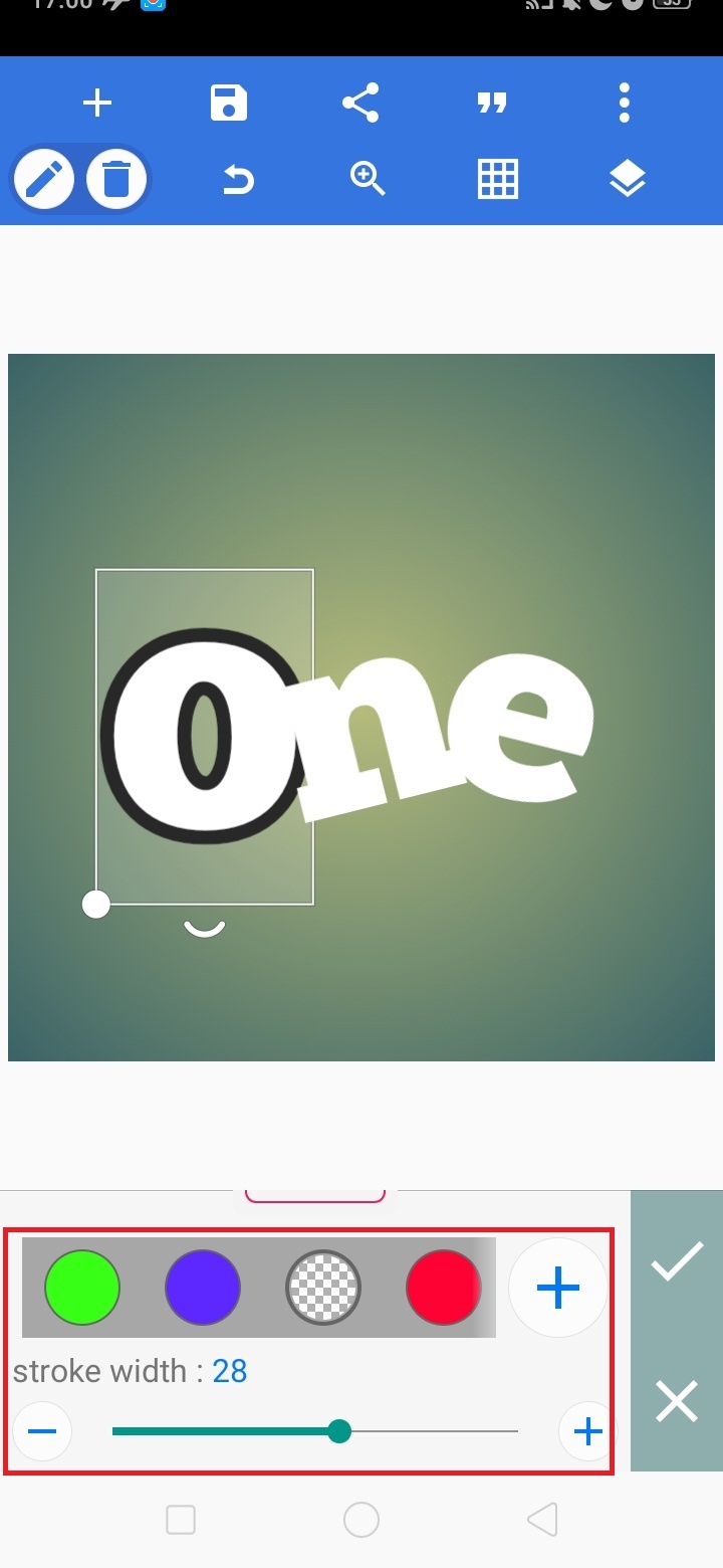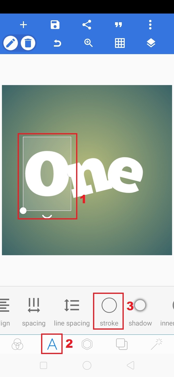 5. Beri garis pinggir teks, pilih teks – klik ‘A’ – pilih ‘stroke’.