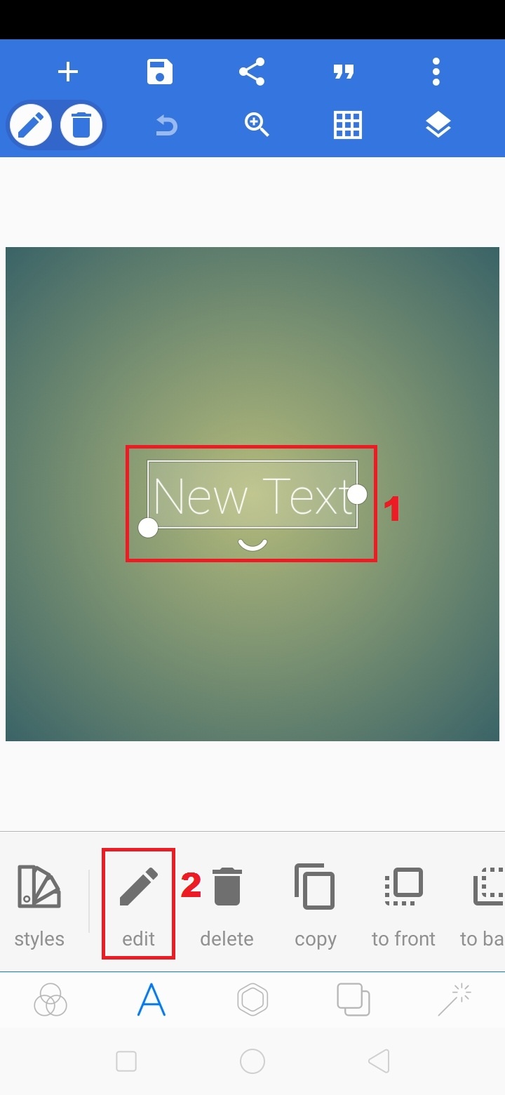 2. Untuk mengubah teks, klik ‘New Text’ – klik ‘A’ – pilih ‘edit’.