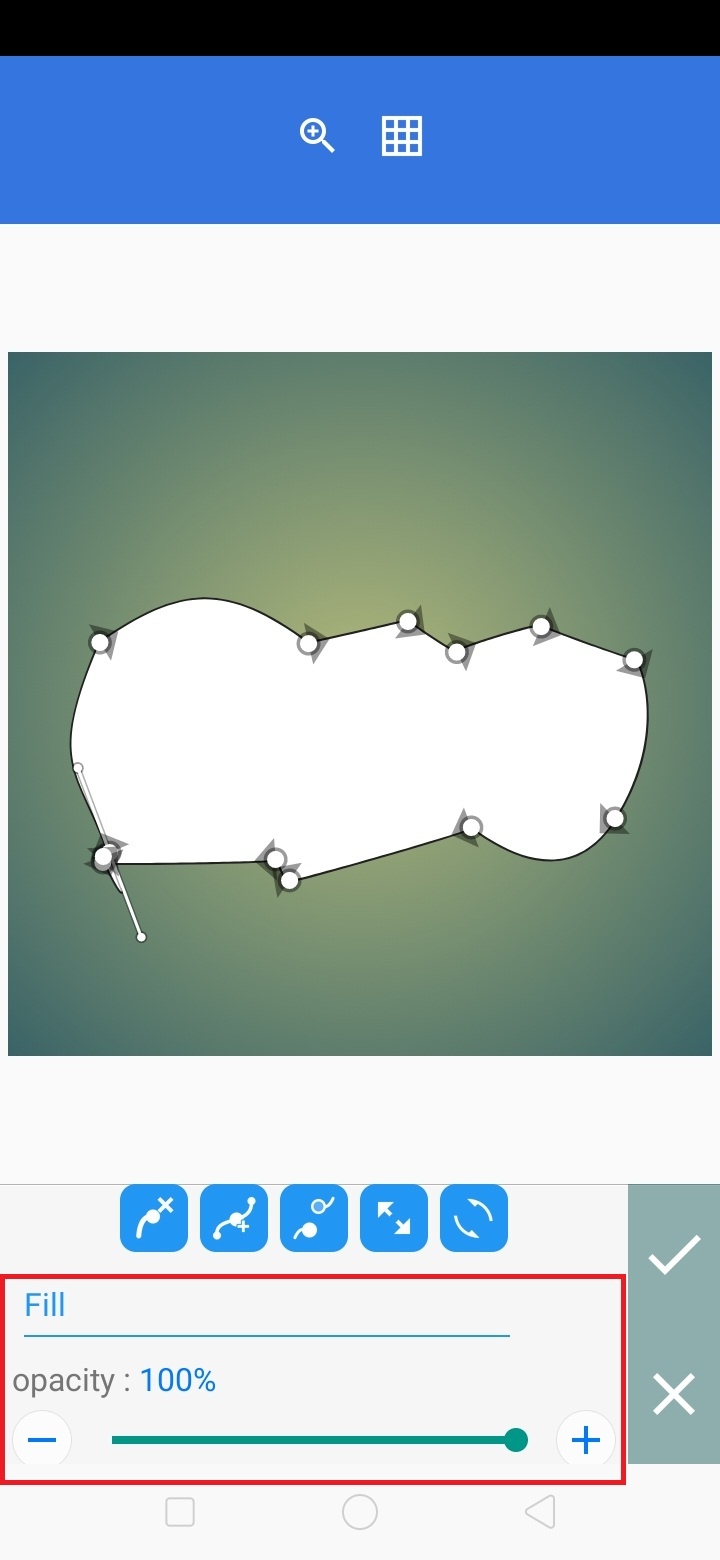 Klik ikon ‘melengkung’ untuk mengatur bentuk garis tepi.