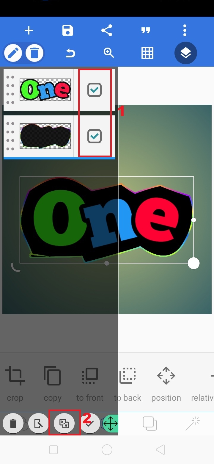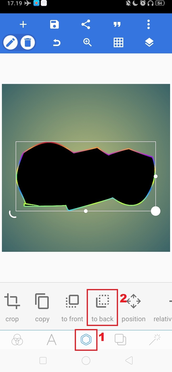 9. Untuk menampilkan teks one keluar, klik ‘segi enam’ – pilih ‘to back’.