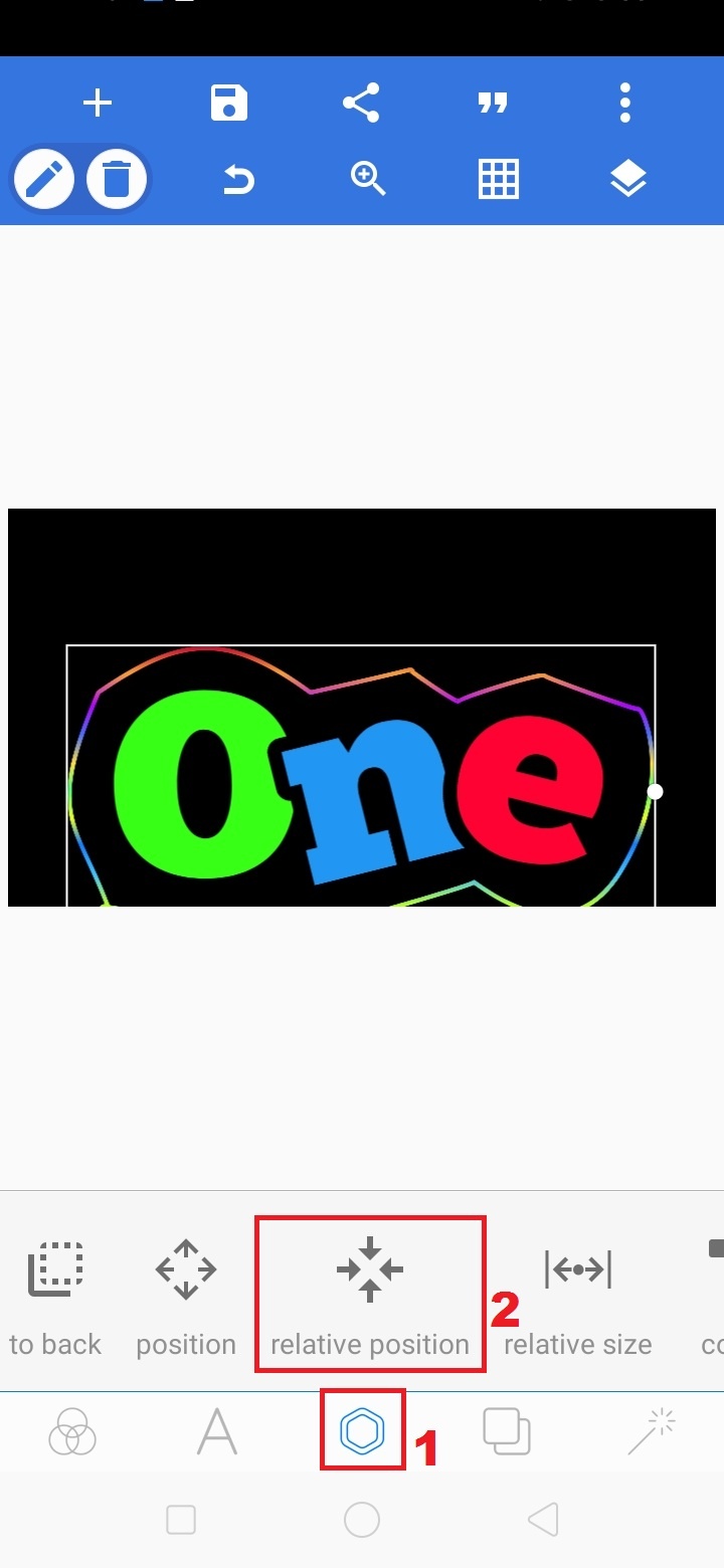 13. Untuk mengatur posisi teks di background, klik ‘segi enam’ – pilih ‘relative position’.