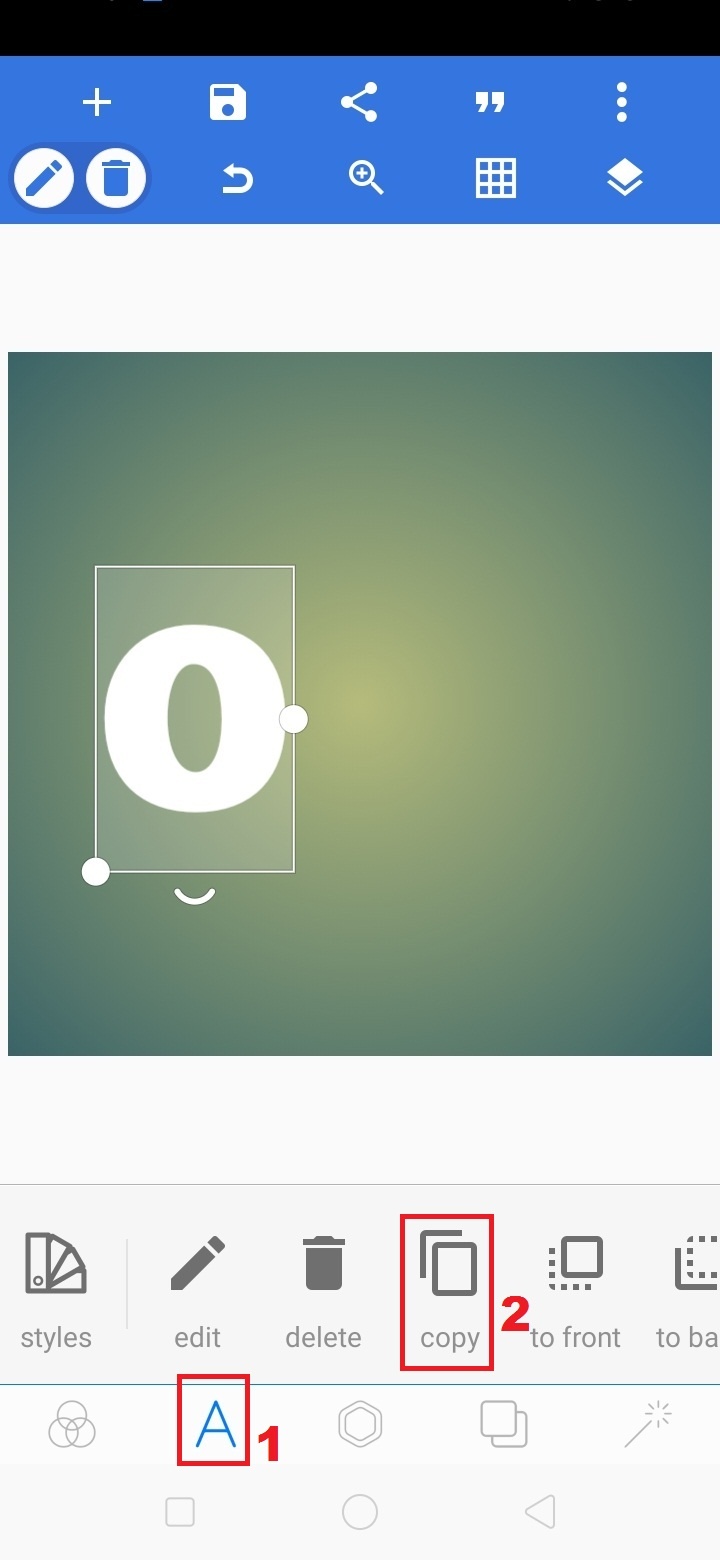 3. Untuk menambah teks, klik ‘A’ – pilih ‘copy’.