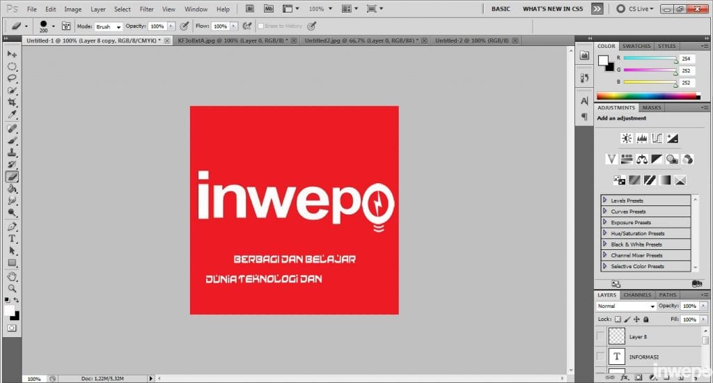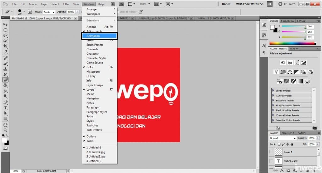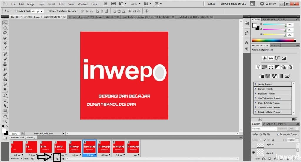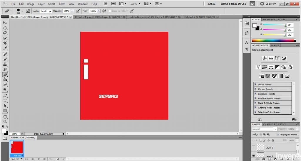 Buat tulisan yang akan kita jadikan animasi bisa perkata atau bisa juga perhuruf tergantung keinginan, contohnya disini Inwepo akan membuat dengan tulisan perhuruf.