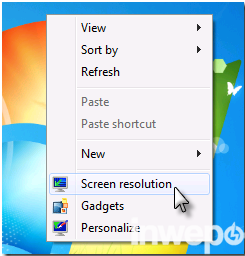 3. Cara kedua adalah dengan klik kanan pada desktop dan pilih Resolusi layar.