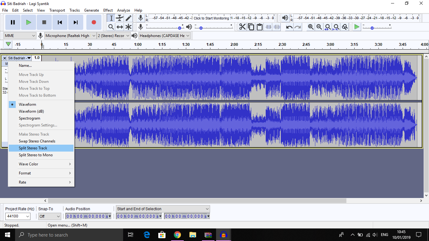 5. Lalu pilih “Split Stereo Track”.