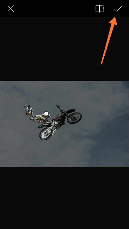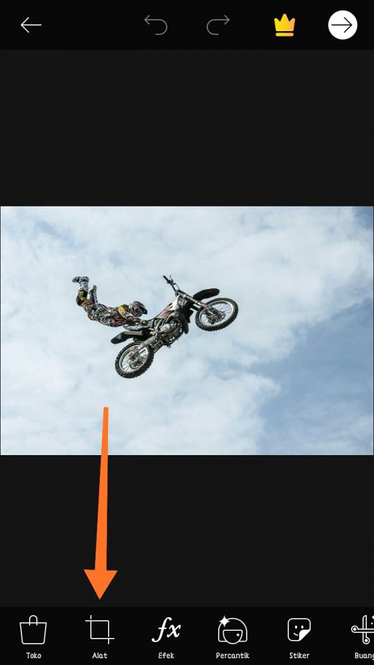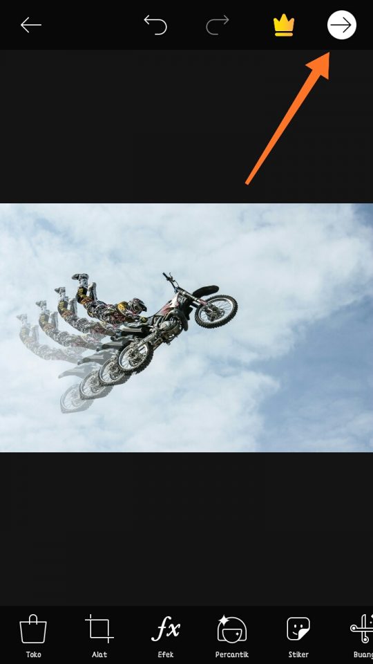5. Lalu kamu akan kembali ke tampilan menu awal tapi dengan hasil pengeditan, tap ikon anak panah seperti yang ditunjukkan pada gambar.