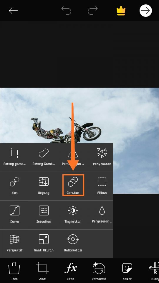 Tap menu tools gerakan.