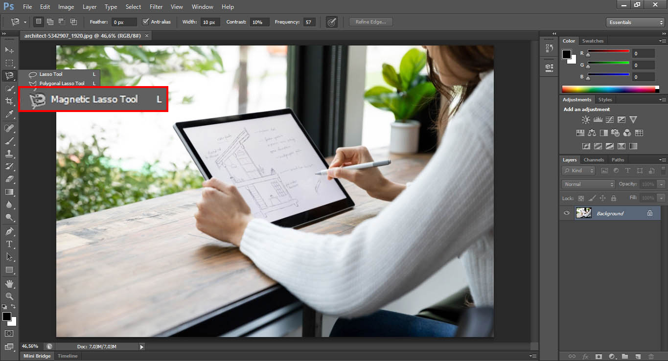 5. Lalu kamu bisa seleksi objek atau foto dengan menggunakan Magnetic Lasso Tool seperti pada gambar berikut ini.