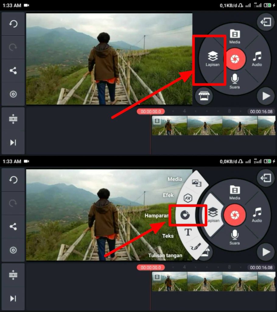 3. Pilih menu lapisan, lalu hamparan untuk menuju ke penyisipan effect.