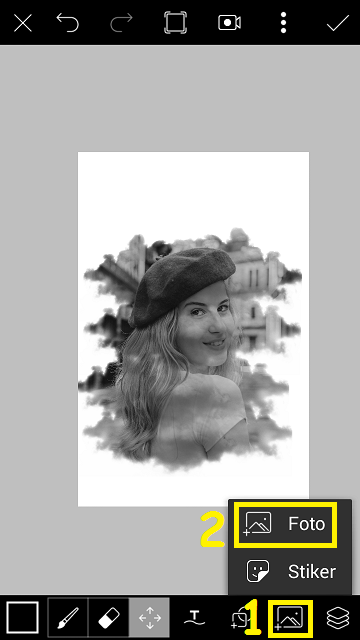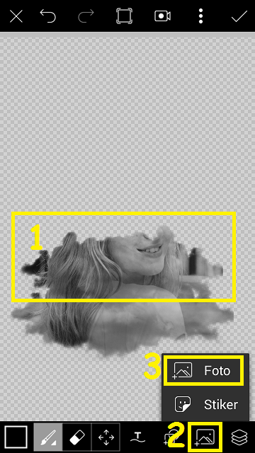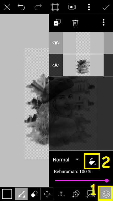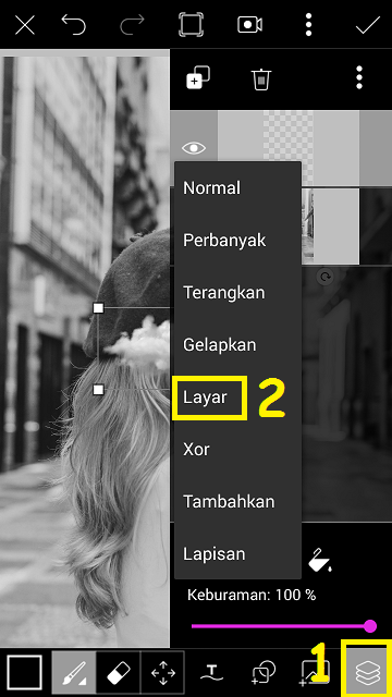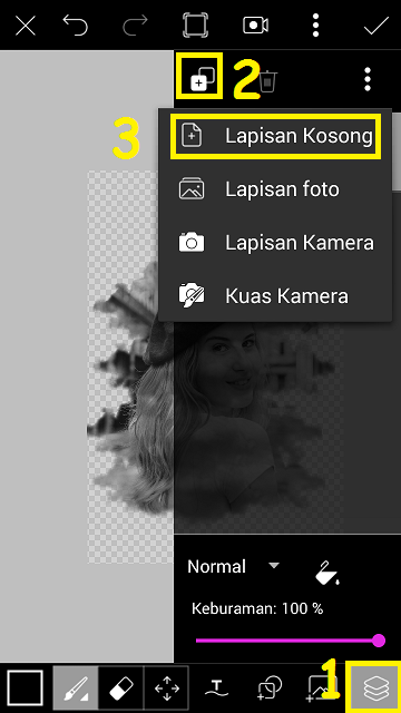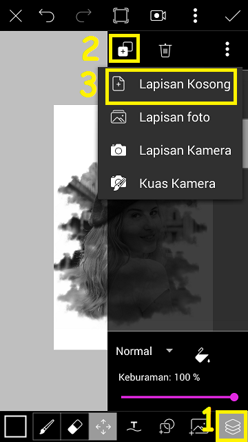 Perbesar foto cloud sesuai dengan kebutuhan, dan ubah pengaturan foto cloud dengan pilih ‘Lapisan’ – ubah pengaturan dari normal menjadi layar.
