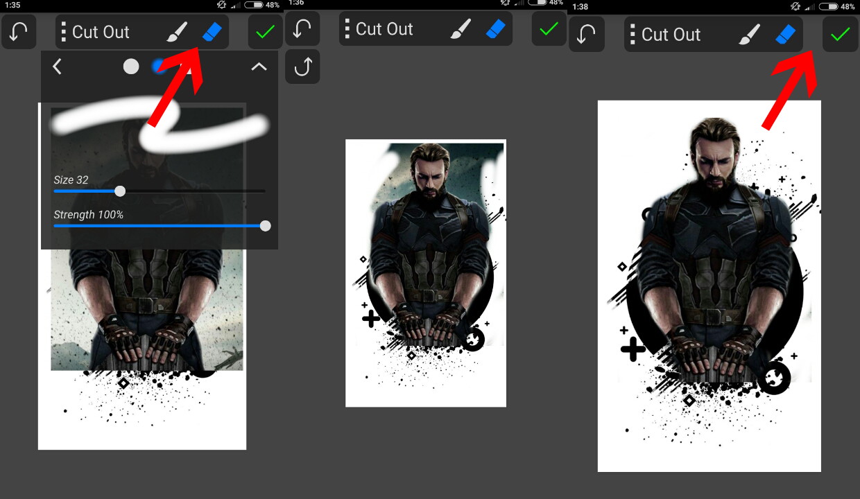 3. Selanjutnya masukan foto modelnya. Letakan secara sejajar dengan mentahan Explosionnya. Pilih tools Penghapus lalu hapus bagian backgroundnya. Setelah selesai pilih tanda Centang.