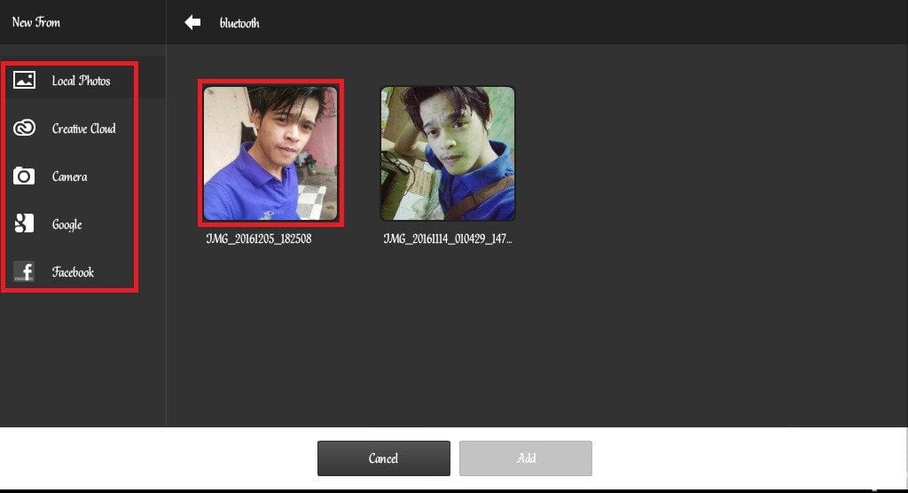 Masukan fotobisa memilih dari gallery yang ada di handphone ataupun memilih gambar dari Facebook. jika sudah terpilih centang foto dan klik Ok.