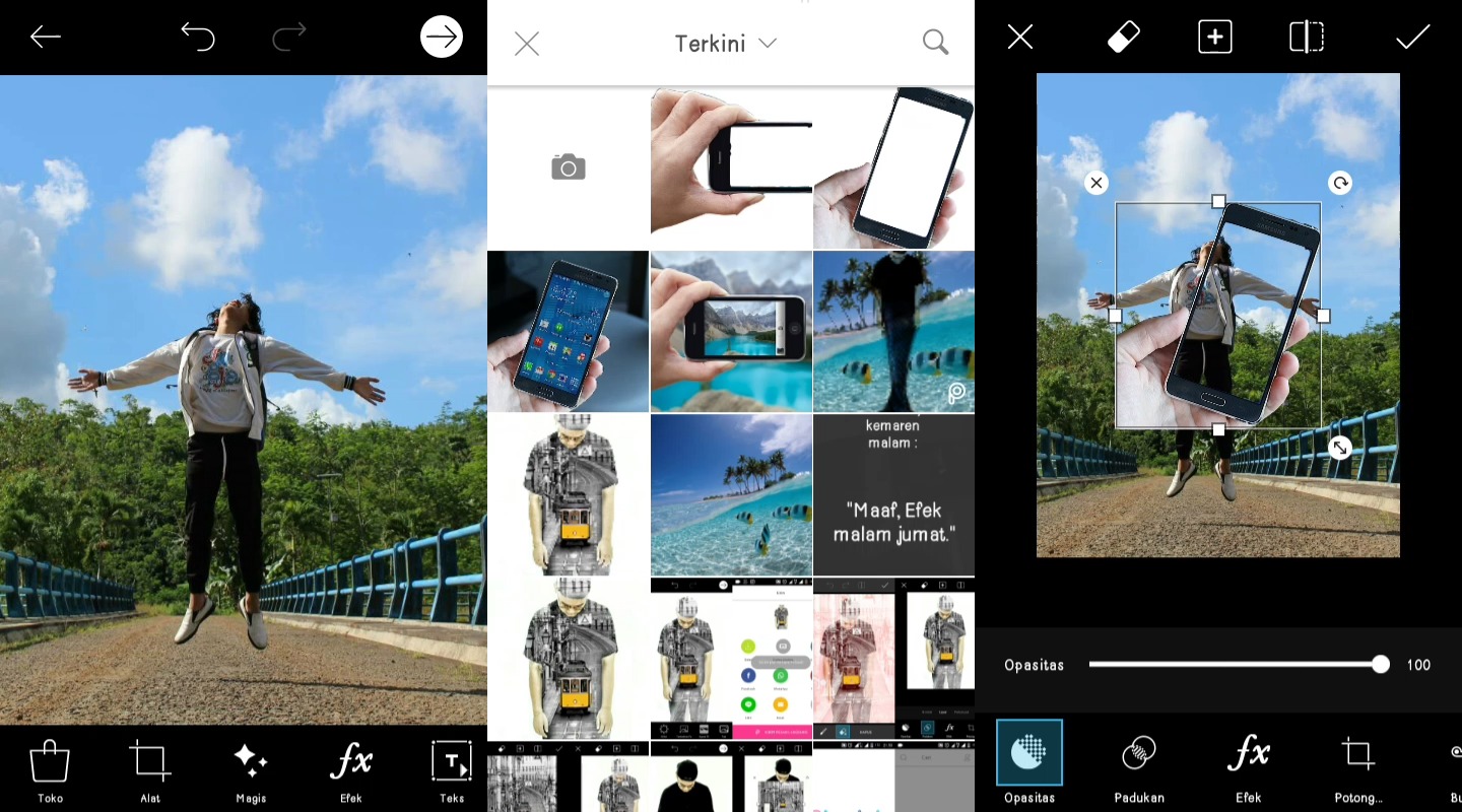 4. Selanjutnya, lalu beralih ke icon tambah gambar lagi dan pilih objek gambar kedua yang akan di jadikan bingkai foto kamu. foto tersebut yang nantinya akan dijadikan keluar dari bingkai.