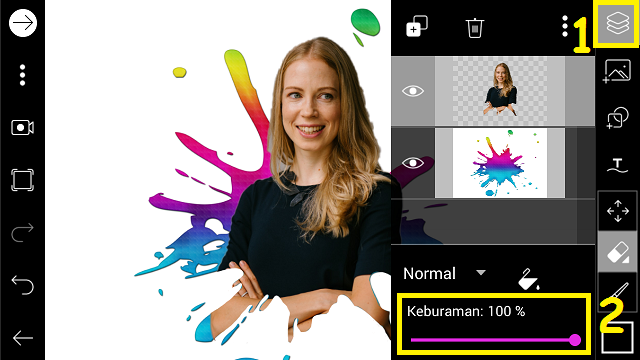 13. Bila sudah selesai menghapus, naikkan lagi nilai opacity menjadi 100.