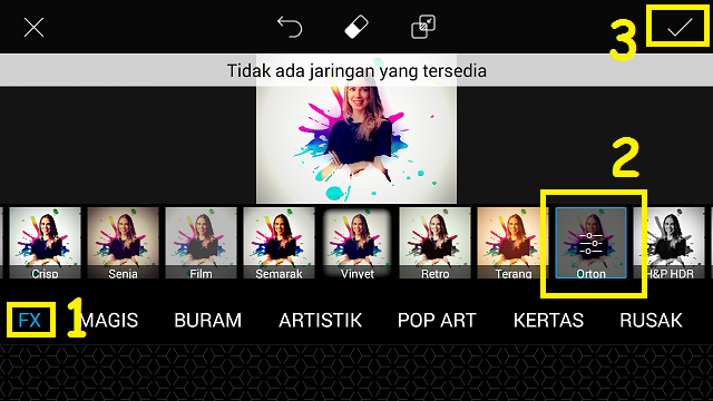 16. Pilih ‘FX’ – ‘Orton’. Klik centang.