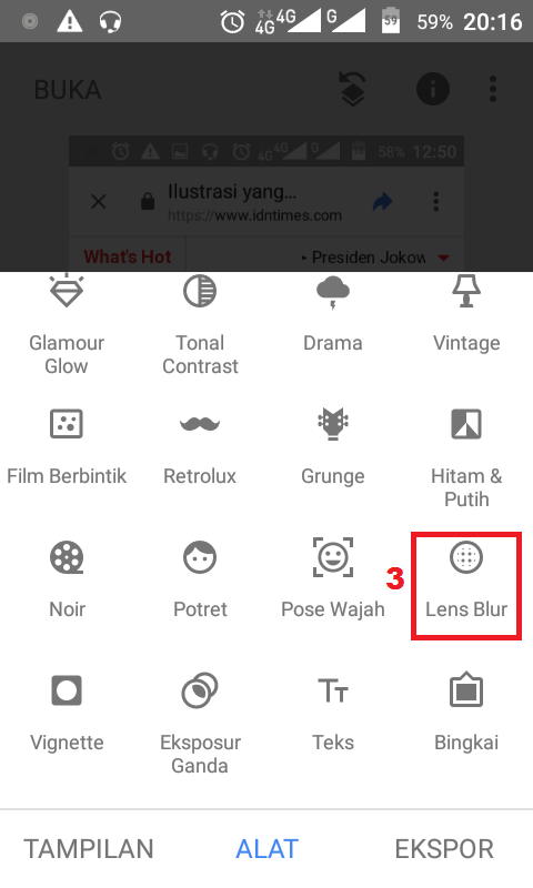 3. Klik ALAT – Klik Lens Blur.
