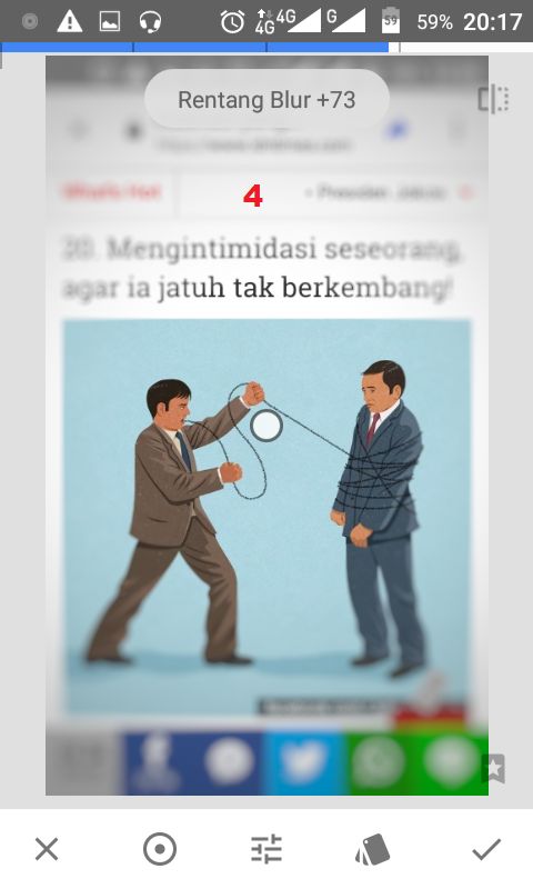 4. Kamu bisa mengatur ketebalan atau kelebaran lens blur pada foto sesuai keinginan atau kebutuhan. Kemudian, ketuk ikon ceklist.