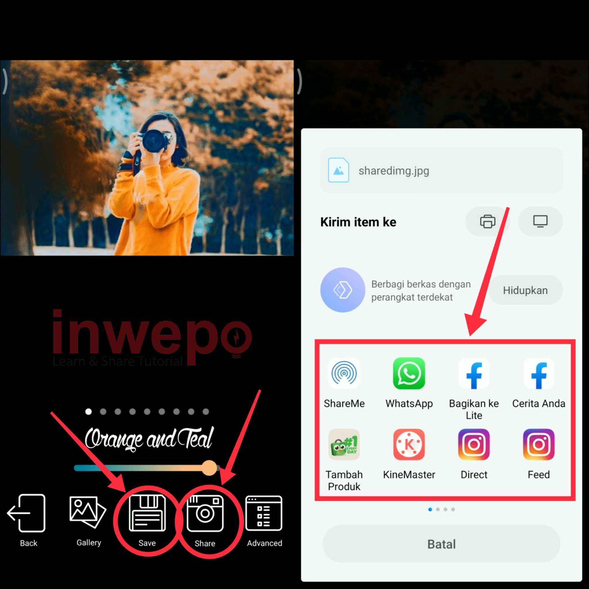 4. Langkah keempat, untuk menyimpannya cukup tap menu Save dan gunakan menu Share untuk langsung membagikannya ke jejaring media sosial yang kamu miliki.