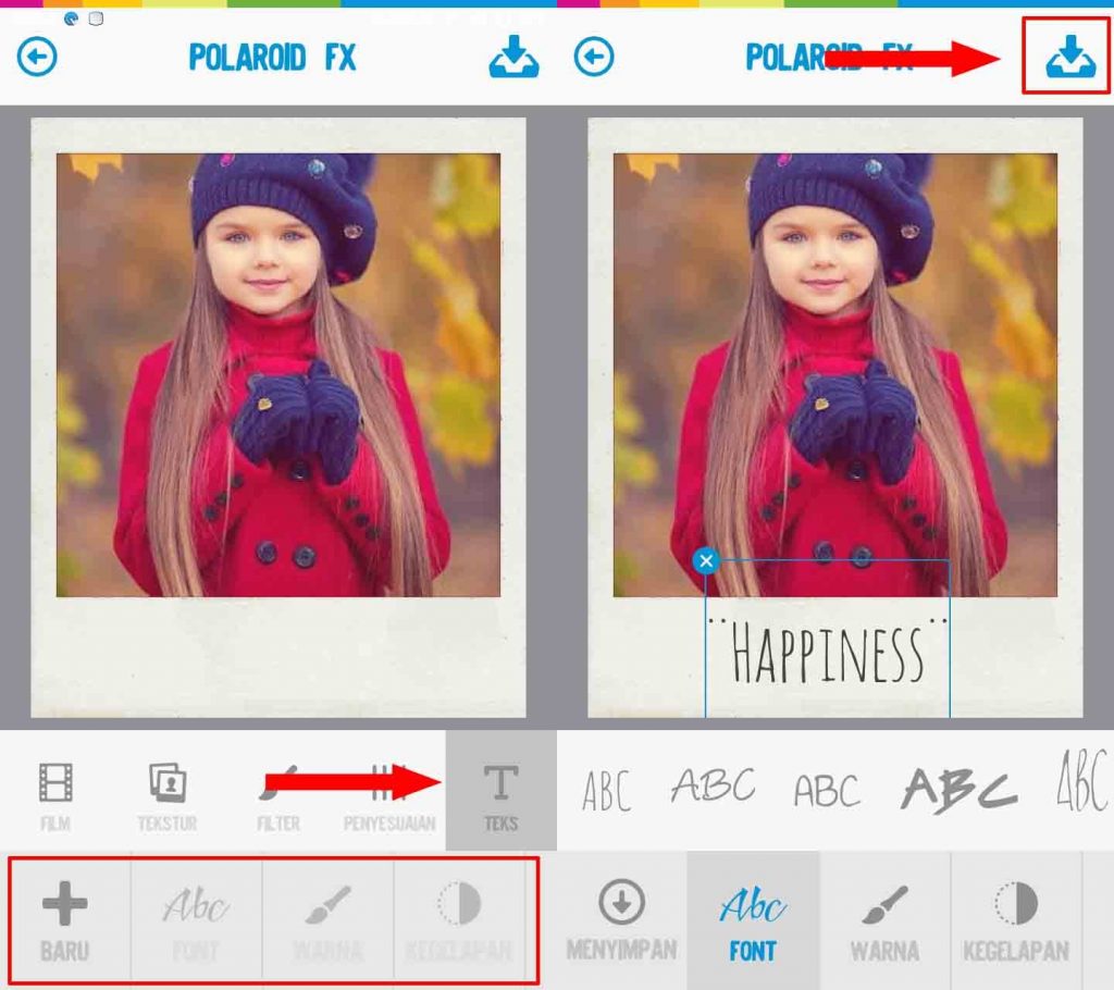 5. Selanjutnya tap TEKS untuk menambahkan kata-kata atau kalimat pada foto lalu jika sudah tap icon download di pojok kanan atas.
