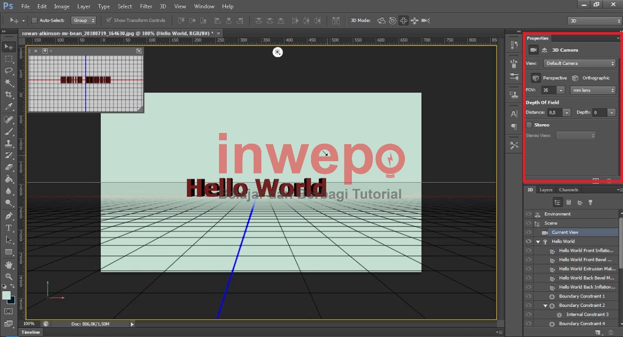 6. Disini, kamu harus mengatur hasil tampilan pada teks 3d kamu, dari segi rotasi, angle depan dan lain-lain pada menu yang diberi kotak berwarna merah pada gambar di bawah ini.
