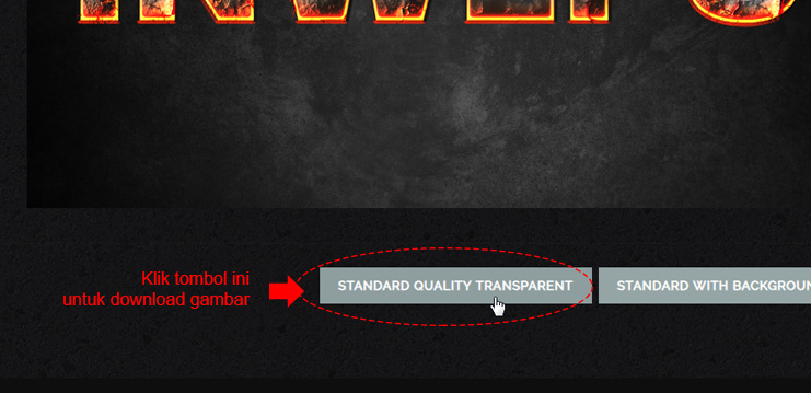 6. Untuk menyimpan gambar efek teks ini, klik tombol “Standard Quality Transparent”.