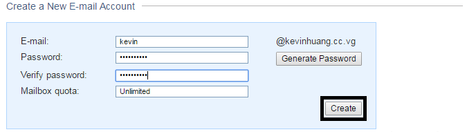 5. Klik ‘Create’ dan email anda telah siap digunakan.