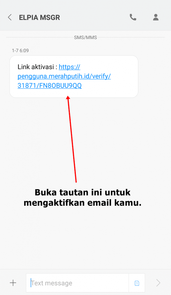 4. Langkah selanjutnya adalah menunggu SMS yang akan terkirim ke ponsel kamu. Setelah SMS sampai ke ponsel mu, maka bukalah link yang dikirimkan ke SMS tersebut untuk mengaktifkan akun email-mu.
