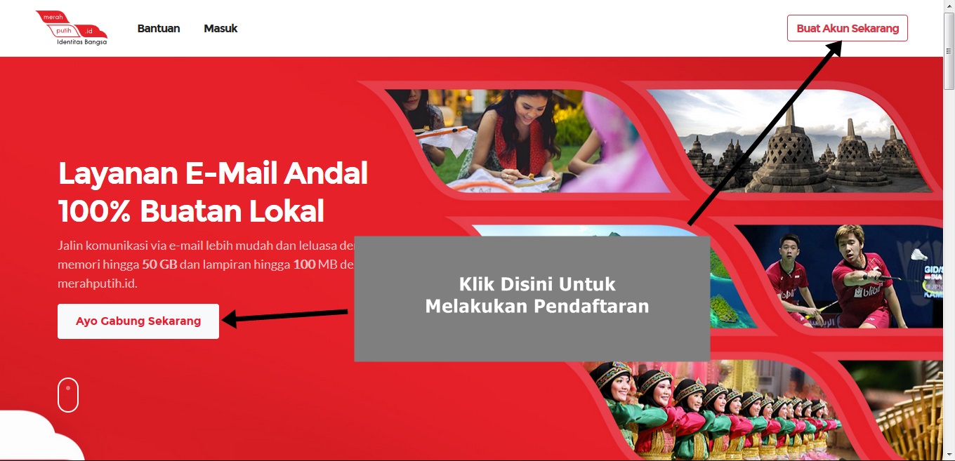 1. Buka situs merahputih.id, lakukan pendaftaran dengan memilih tombol “Buat Akun Sekarang” atau “Ayo Gabung Sekarang”.