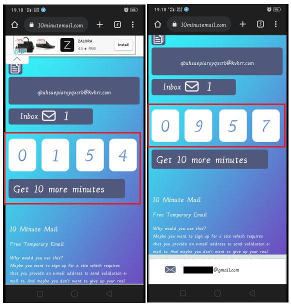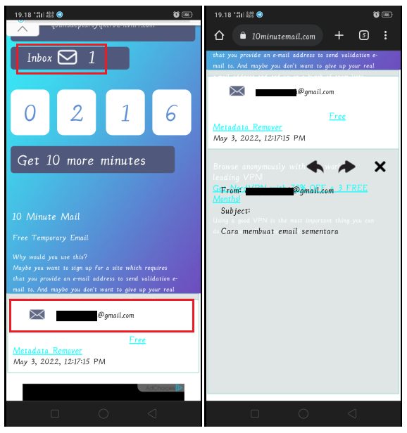 5. Namun, apabila kamu masih memerlukan email sementara tersebut, tap tombol Get 10 more minutes untuk mendapatkan 10 menit tambahan waktu.