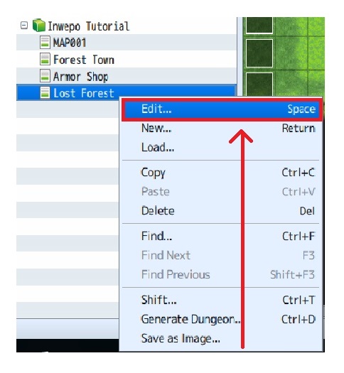 7. Klik kanan pada map “Lost Forest” lalu pilih “edit”. Jika sudah, maka akan masuk ke menu Map Properties.