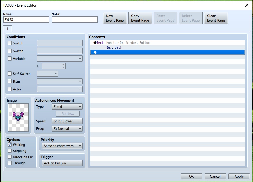 11. Jika sudah, kita buat NPC sederhana namun ubah gambarnya menjadi gambar monster. Untuk tutorial pembuatan NPC.