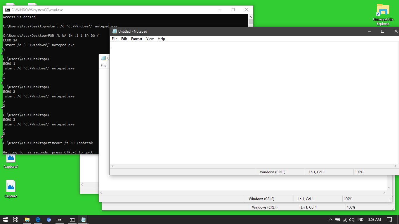 - Untuk menjalankan lebih dari 1 aplikasi, masukkan perintah di bawah ini. (Ganti karakter # menjadi direktori aplikasi yang ingin kamu jalankan misal C:\Program Files (x86)\Winamp dan ganti notepad.exe menjadi winamp.exe, ubah keduanya dengan aplikasi yang ingin kamu jalankan).