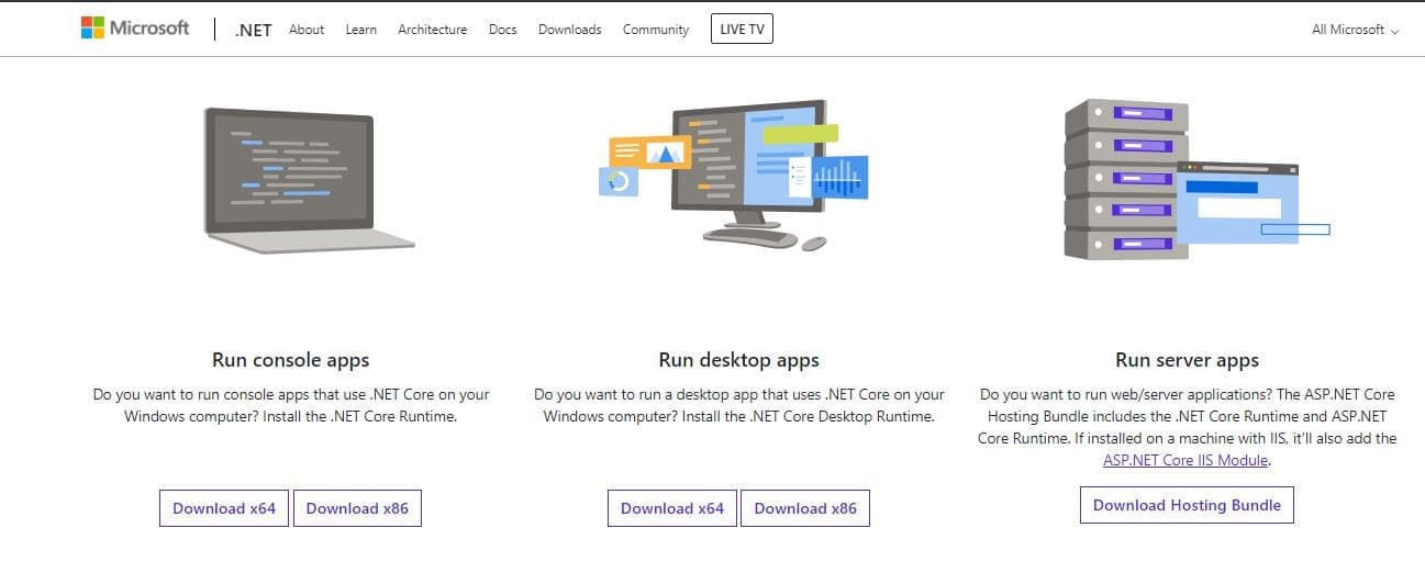 7. Segera beralih pada laman dotnet.microsoft.com/download. Download Run Desktop Apps, karena kita ingin menjalankan PowerToys pada Desktop.