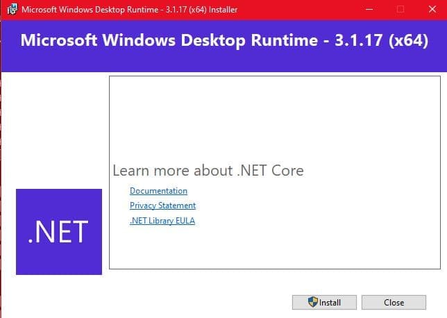6. Apabila kamu belum memiliki .NET Core, maka kamu perlu mendownload dan installnya terlebih dahulu. Di sini penulis belum memiliki .NET Core dan akan timbul notifikasi seperti di bawah ini. .Net Core, layaknya bundle library yang memungkinkan deployment sistem Windows dan sistem lainnya.