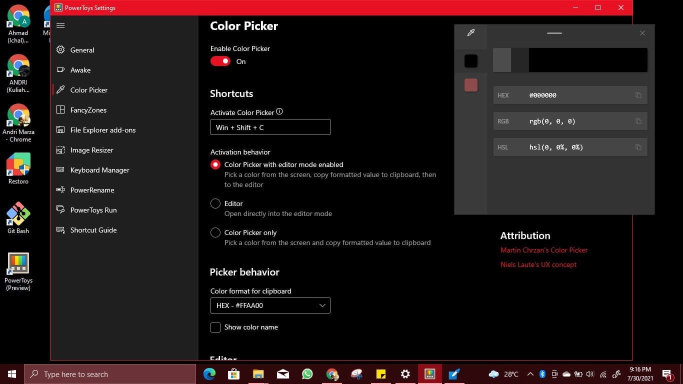 Aplikasi Microsoft PowerToys, adalah aplikasi resmi dari Microsoft yang dapat pengguna Windows gunakan guna menambah good experience mereka dalam menggunakan sistem. Fitur-fitur di dalamnya memungkinkan kita untuk melakukan immersive search seperti Mac OS, dan juga memudahkan dalam mencari kode warna dari obyek tertentu di sistem. Semoga bermanfaat.