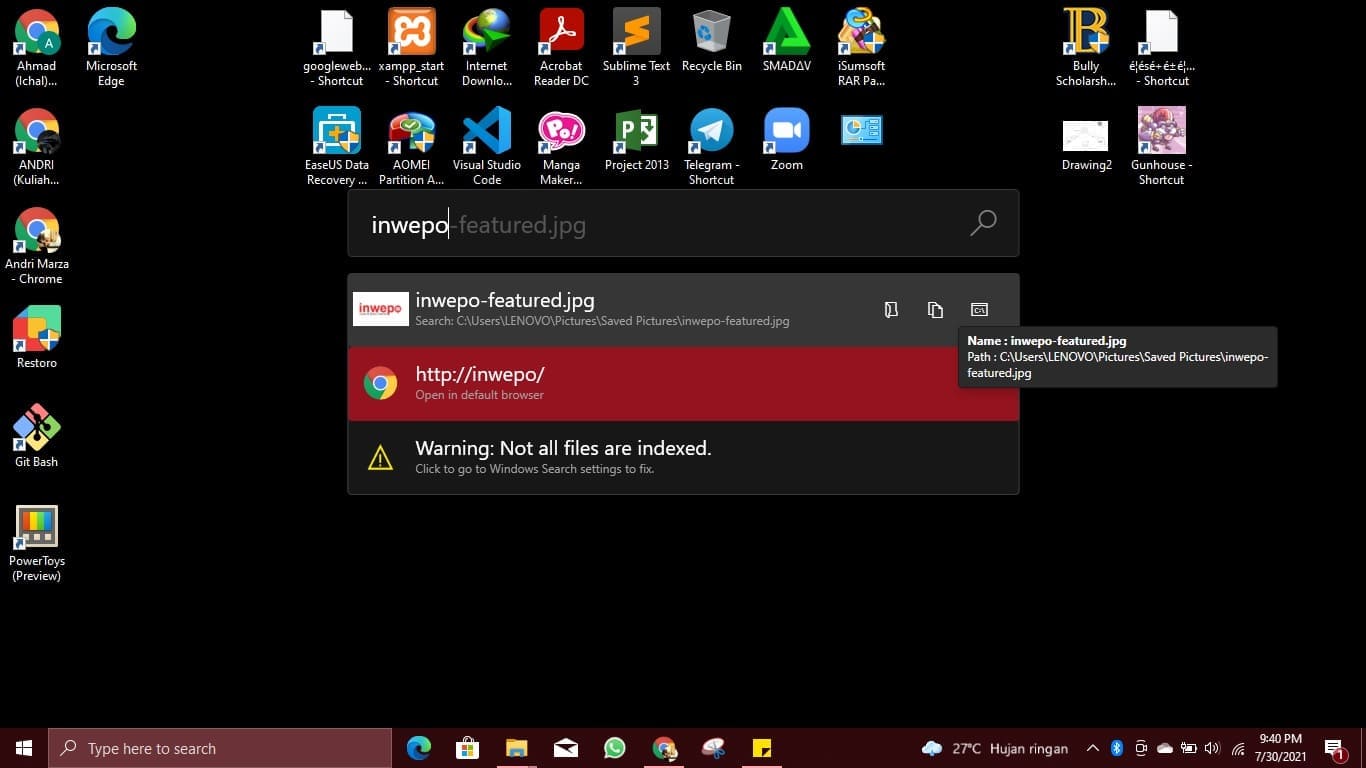 14. Terakhir, seperti inilah hasil pencarian dengan kata Inwepo, pada “Spotlight Windows” .
