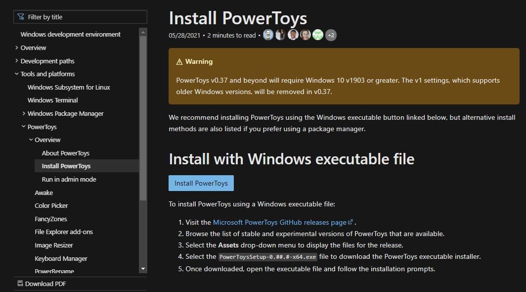 Di bagian tersebut, tekan menu InstallPowerToys.