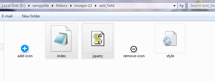 Simpan kode HTLM5 di atas di folder xampplite – htdocs – buat folder baru dengan nama addDelInput – simpan kode di atas dengan nama index.html.