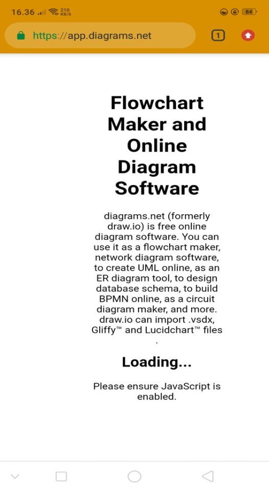 1. Pertama buka browser di HP kamu lalu kunjungi situs draw.io.