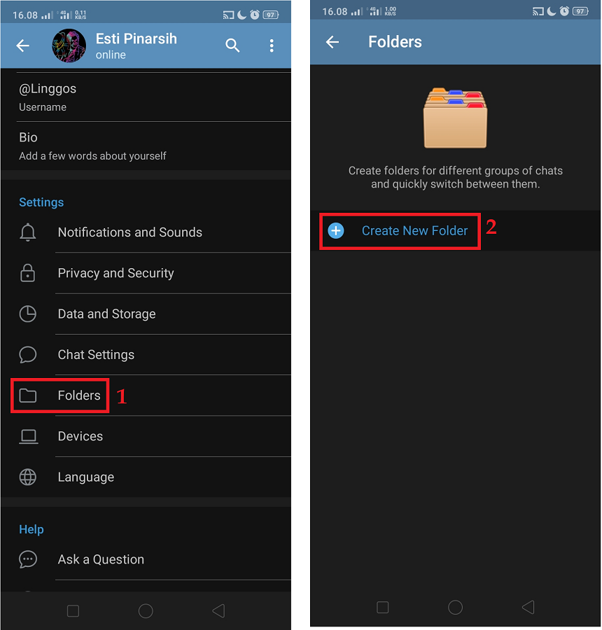 Membuat Folder Chat Telegram