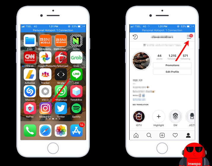 1. Buka aplikasi Instagram – Buka profil Instagram kamu – ketuk ikon tiga garis di kanan atas.