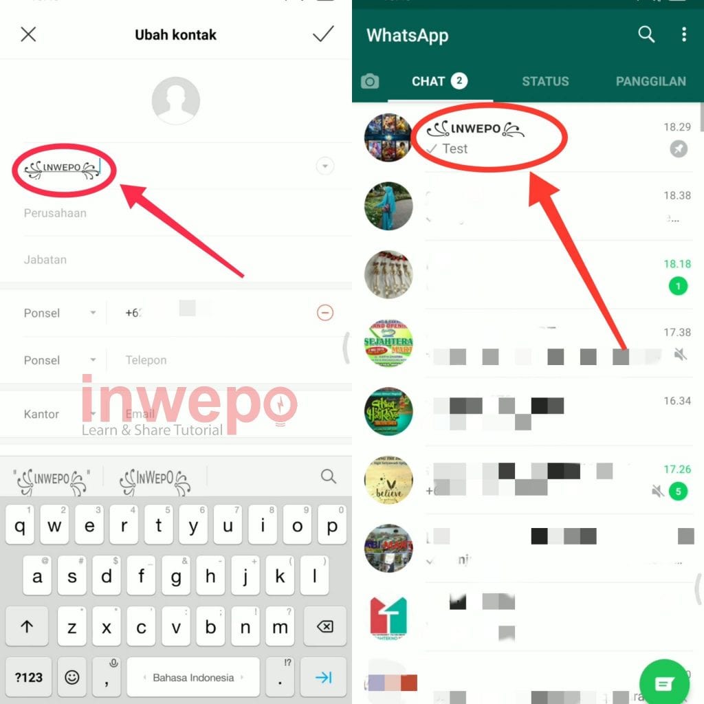 Di dalam WhatsApp sendiri juga tidak terdapat iklan-iklan yang mengganggu. Sehingga hal ini juga menjadi keunggulan tersendiri bagi WhatsApp. Selain itu banyak fitur-fitur menarik yang juga ada pada WhatsApp. Nah, pada kesempatan kali ini inwepo akan berbagi cara untuk mengubah nick name kontak WhatsApp kamu agar lebih menarik. Berikut ini tutorial lengkapnya.
